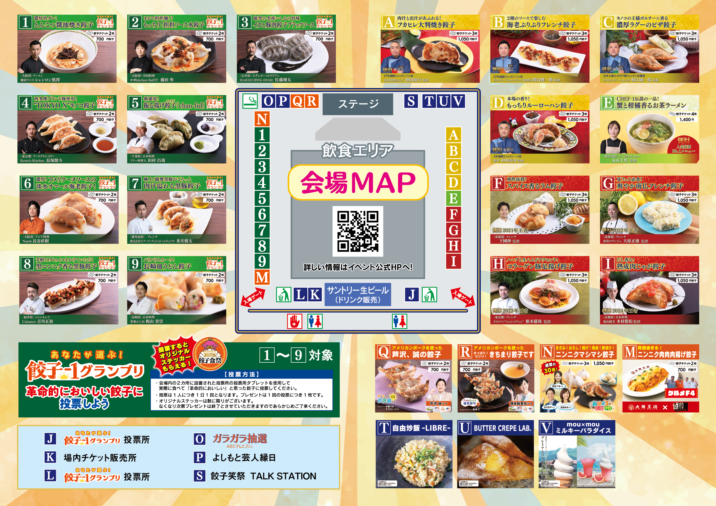 これまで『CHEF-1グランプリ』に出場した、全国各地の名だたるシェフ9名が「オリジナル革命餃子」を考案して出店。